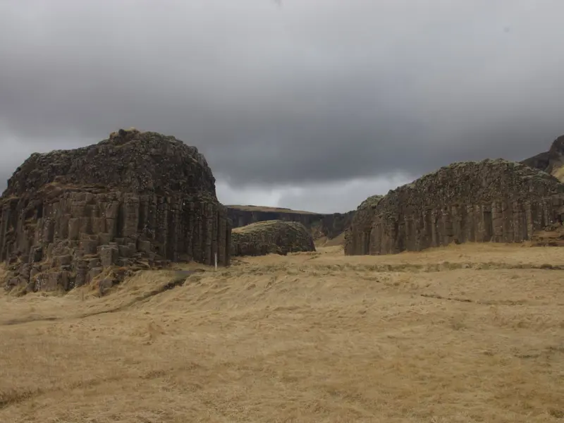 Fagurlega formaðir stuðlabergshamrar úr blágrýti