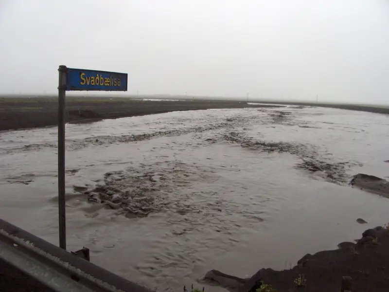 Eðjuflóð, sem er tegund af flóði sem er samblanda af vatni, gjósku og bergbrotum, átti sér stað á meðan á gosinu stóð eftir að það rigndi mikið við jökulinn. Þetta var fyrsta staðfesta eðjuflóðið á Íslandi síðan í Heklugosinu 1947. Síðan að eldgosið í Eyjafjallajökli hófst hafði úrkoma verið lítil á svæðinu, en aðfaranótt 19. maí fór að rigna. Rigningin vatnsmettaði gjóskulög á jöklinum og í fjallshlíðum Eyjafjallajökuls sem leiddu síðan til eðjuflóðsins. Eðjuflóðið fór niður svipaðan farveg og jökulhlaupið og fór síðan út í Svaðbælisá og aðra nærliggjandi ár og læki. Þegar flóðið kom niður á láglendið við Þorvaldseyri, dró úr hraðanum á því og gjóskan í því byrjaði að setjast fyrir. Eðjuflóðið fór yfir um 0,4 km2 svæði og skildi eftir sig að meðaltali 30 cm þykkt set, sem náði allt að 200 cm þykkt víða, og var áætlað heildar magn sets í flóðinu í kringum 200.000 m3. Ólafur Eggertsson, bóndi á Þorvaldseyri, varð fyrst var við flóðið um klukkan 09:00 og náði flóðið hámarki klukkustund síðar. Eðjuflóðið olli nokkrum skemmdum á ræktuðu landi og heitavatnsleiðsu sem lá frá brunni í fjallshlíðunum og niður að Þorvaldseyri. Tjónið hefði getað orðið miklu meira, en nýbyggðir flóðvarnagarðarnir héldu og komu í veg fyrir að eðjuflóðið færi yfir stærra landsvæði.