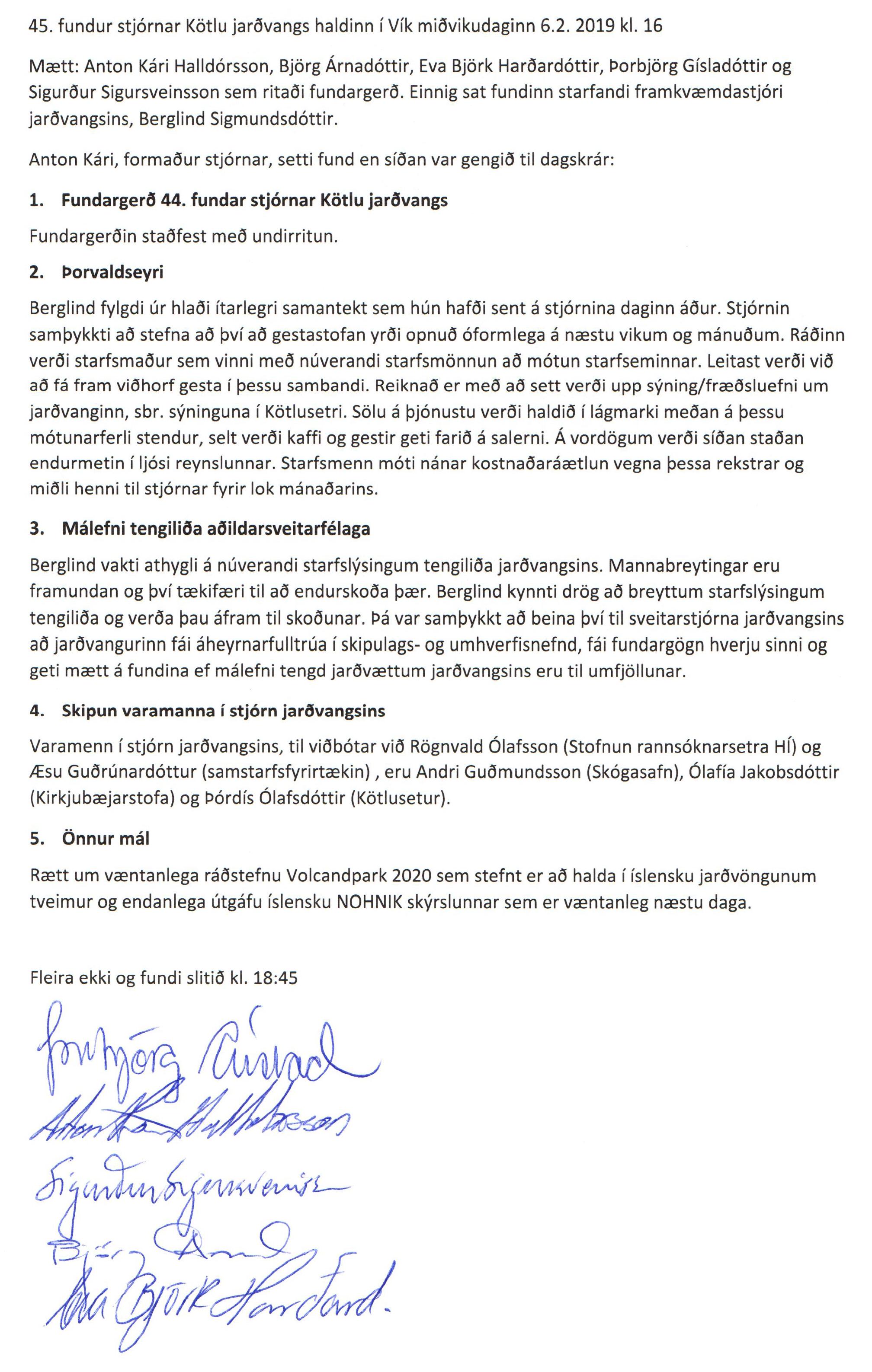 45. fundur stjórnar Kötlu jarðvangs haldinn í Vik fimmtudaginn 6.2 2019 kl. 16.