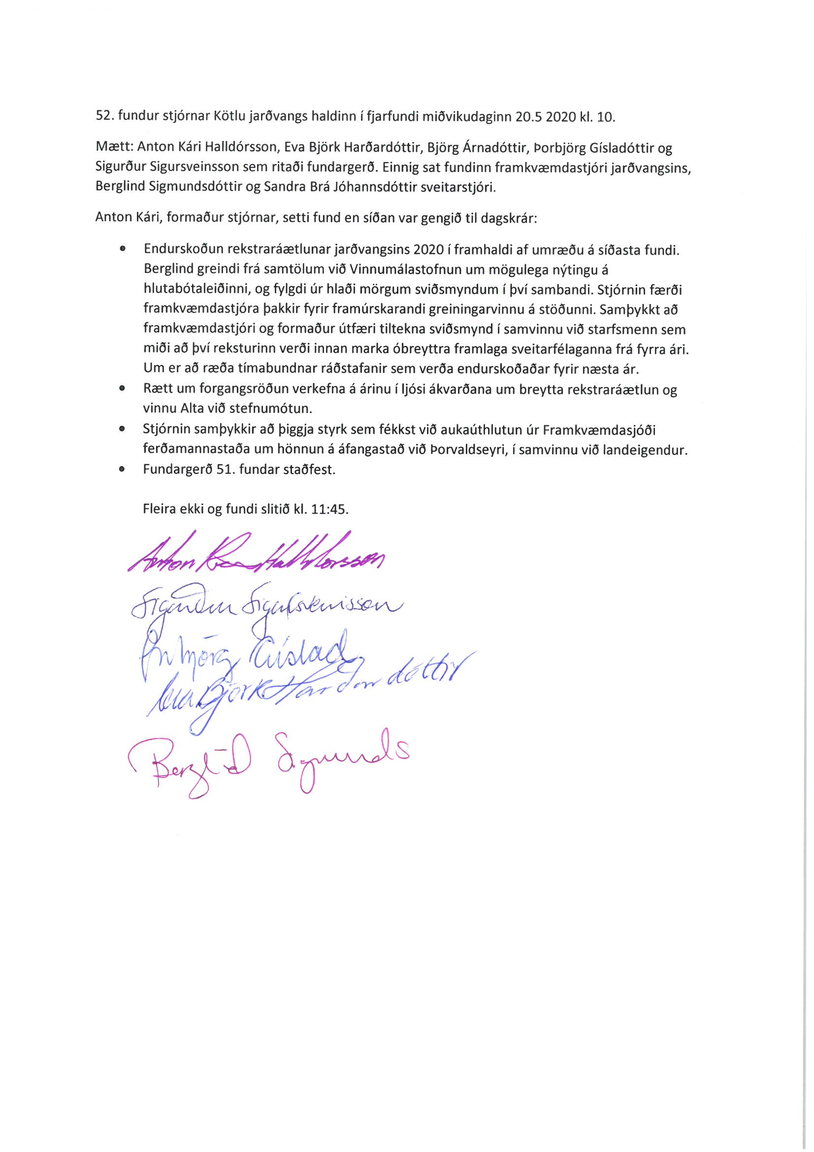 52. fundur stjórnar Kötlu jarðvangs haldinn i fjarfundi Miðvikudaginn 20.05 2020 kl. 10.