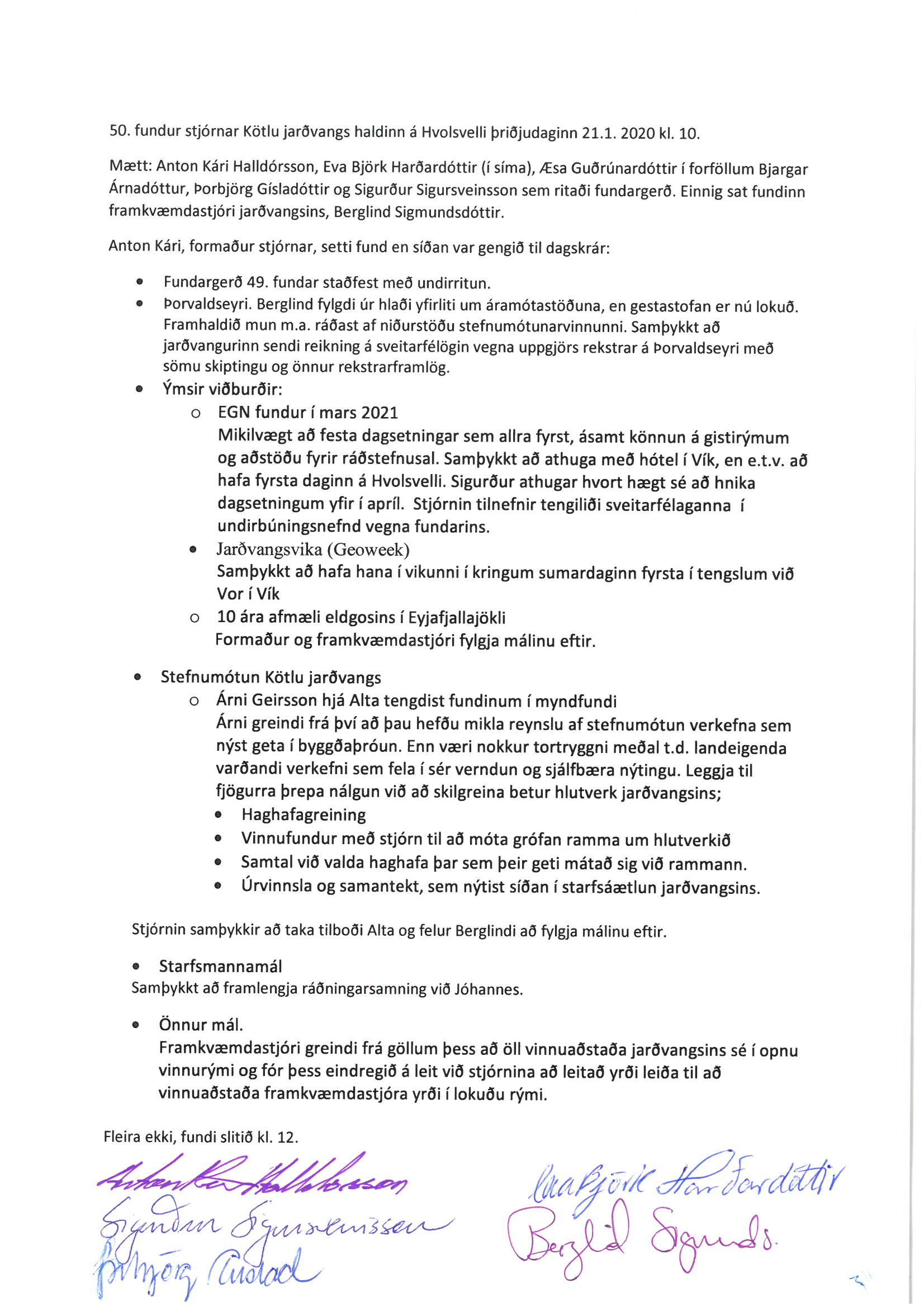 50. fundur stjórnar Kötlu jarðvangs haldinn a Hvolsvölli Þriðjudaginn 21.01 2020 kl. 10.